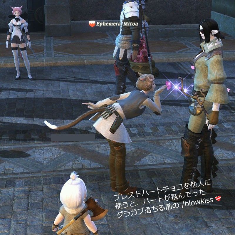 今では普通に使えちゃうエモーション【/blowkiss】、これ、†FF14のとある年のヴァレンティオンデーから使える様になったんですよね。